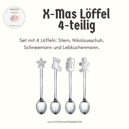 4-teiliges Weihnachtslöffel-Set – Stern, Nikolausstiefel, Schneemann & Lebkuchenmann