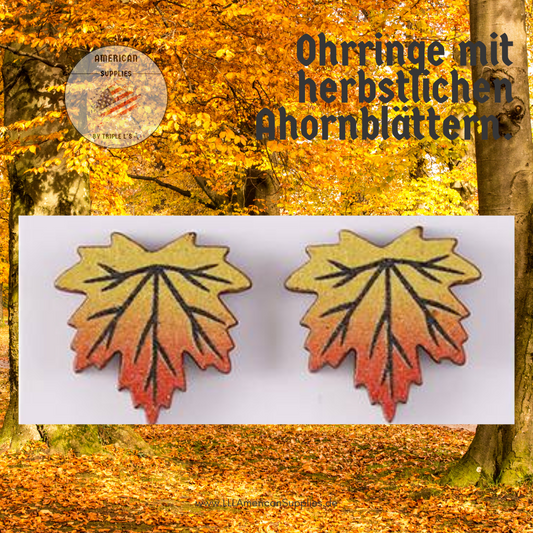 Herbstliche Ahornblatt -Ohrstecker aus Holz – Gelb Rote Blätter- für gemütliche Herbststimmung