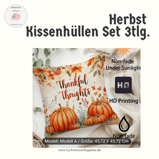 Herbstliche Kissenhüllen Set (3-teilig) -Pumpkin Liebe- Thankful Thoughts
