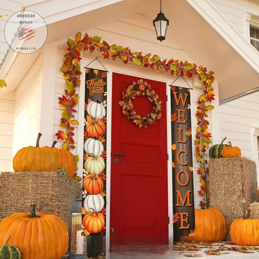 Herbstliche Willkommensbanner-Set mit Kürbissen – 180x30cm, Polyester