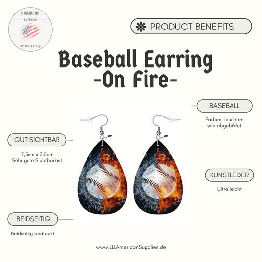 Baseball Ohrring - ultra leicht - Kunstleder - On Fire