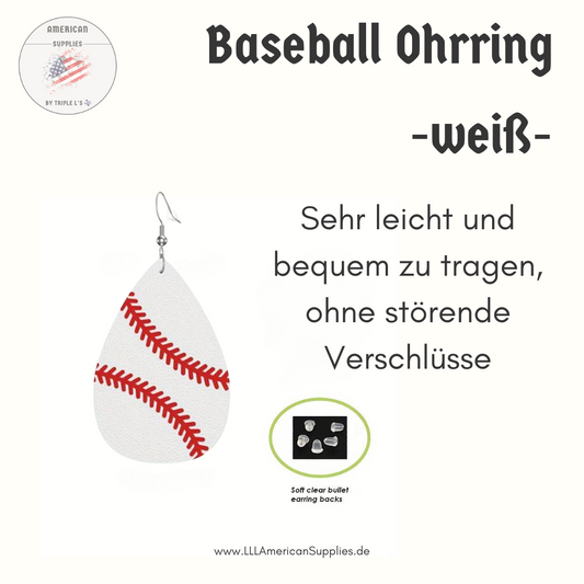 Baseball Ohr Stecker weiß - ultra leicht - Baseball