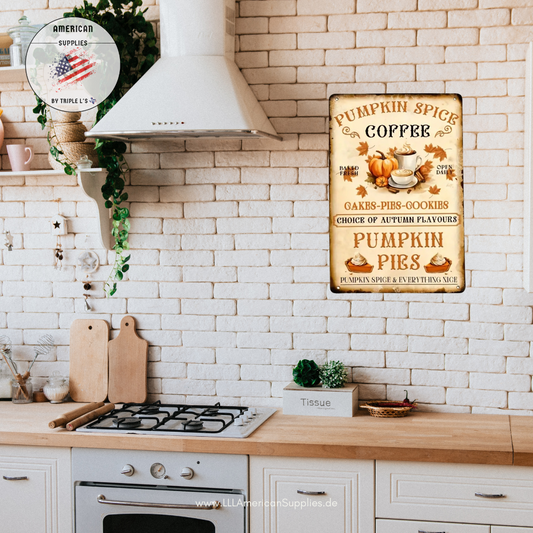 Vintage Pumpkin Spice Metallschild - Herbstdeko USA-Style | 20x30 cm Alu-Schild