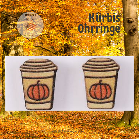 Kürbis Kaffebecher Ohrringe aus Holz -rustikal matt- Thanksgiving Vintage Wooden Pumpkin Earring -rustikal matt-