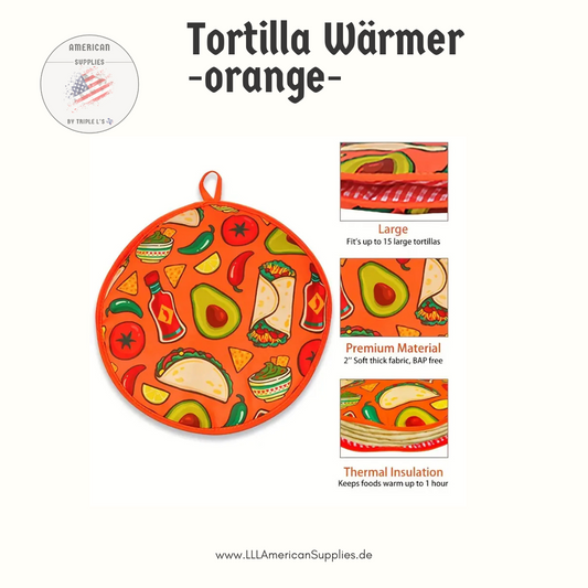 30cm,12-Zoll Tortilla-Wärmer ORANGE mit mexikanischem Druck – Mikrowellensichere isolierte Stofftasche für Tortillas, Pita und Pfannkuchen