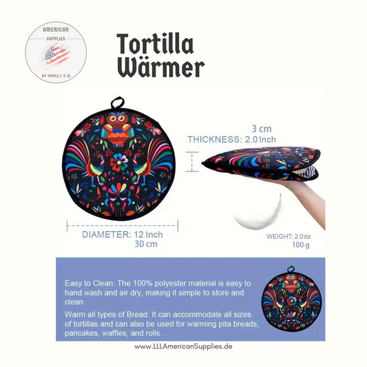 30cm,12-Zoll Tortilla-Wärmer mit mexikanischem Tierdruck – Mikrowellensichere isolierte Stofftasche für Tortillas, Pita und Pfannkuchen