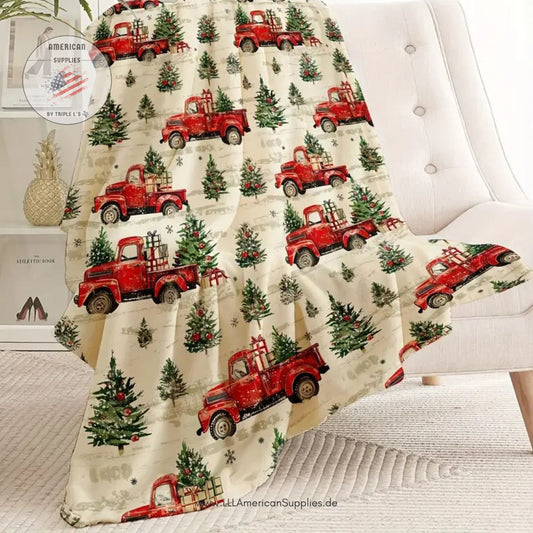 Weihnachts-Kuscheldecke „Red Truck & Christmas Tree“ 200x150cm